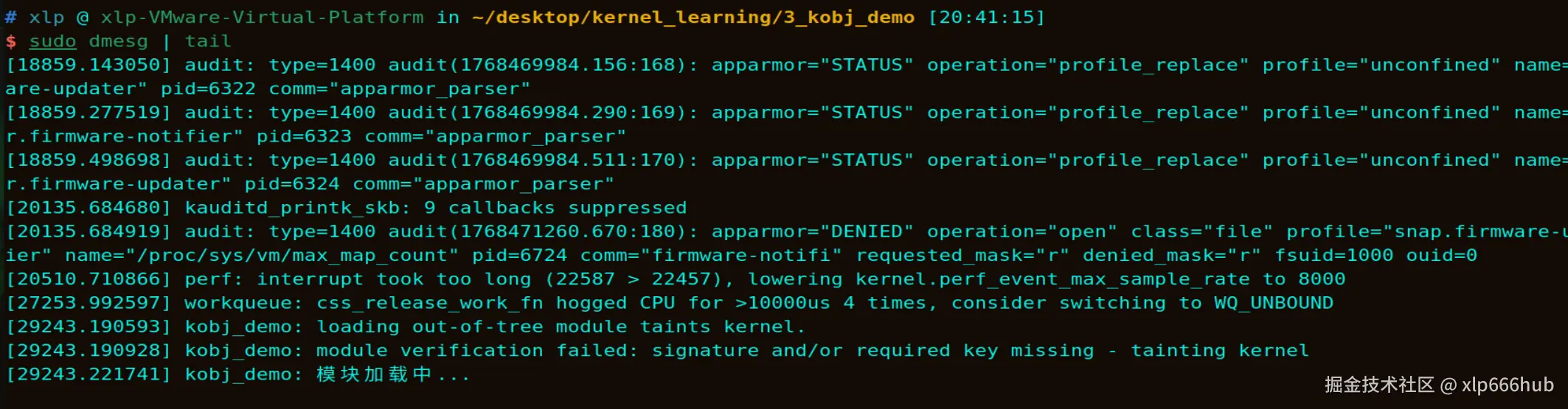 在前两章中,我们已经较为全面的学习了理论。现在,我们将编写一个完整的内核模块,来验证 kobject 的整个生命周期。