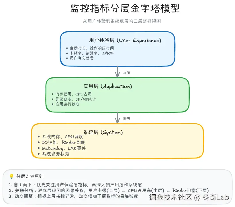 - 建立分层指标模型(用户体验层→应用层→系统层)