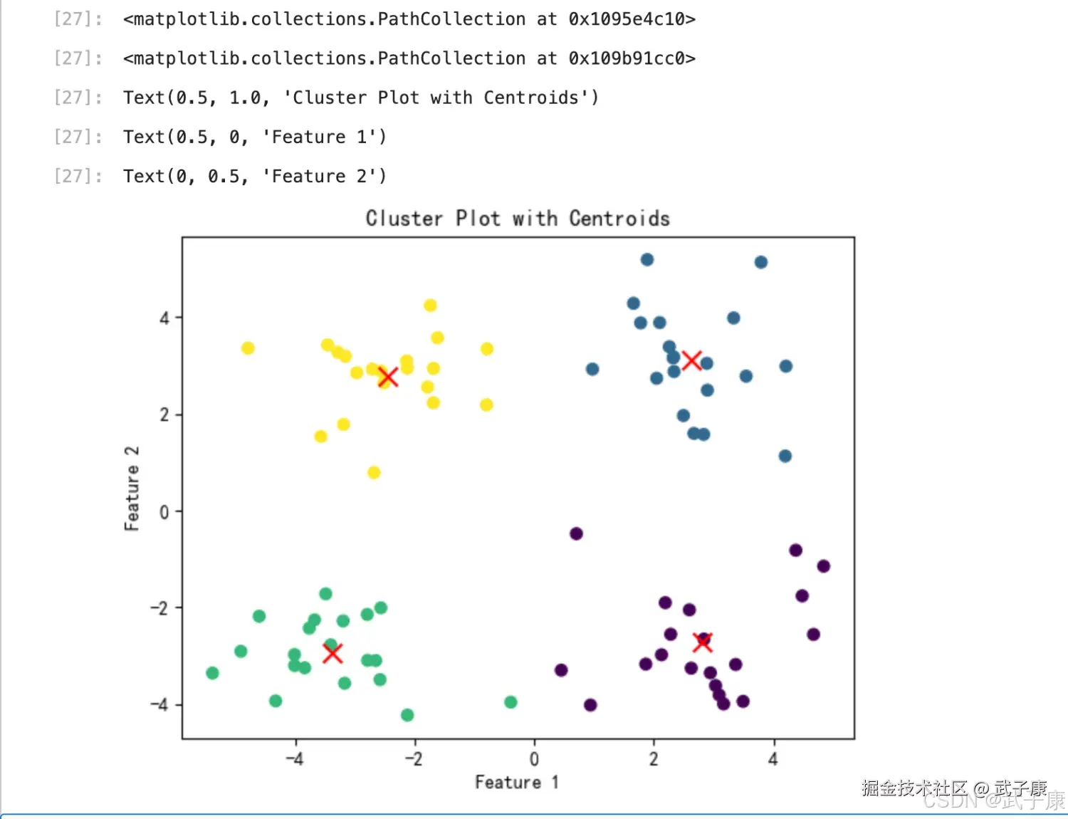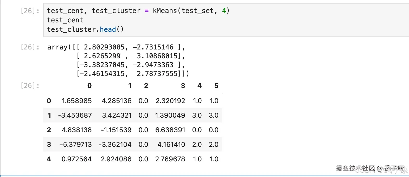 # 执行示例数据集上的 KMeans