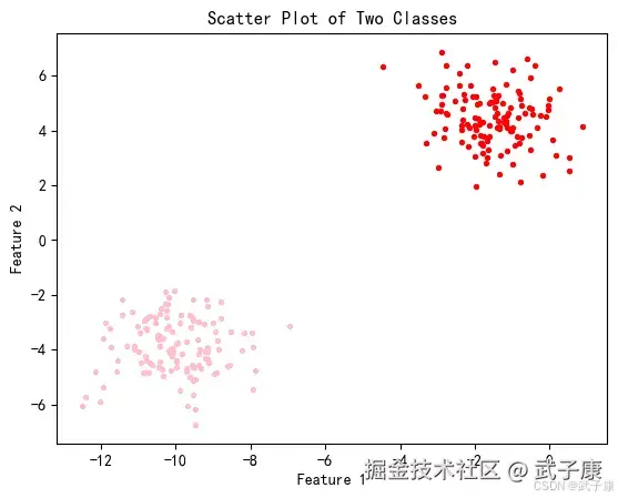 plt.title('Scatter Plot of Two Classes')