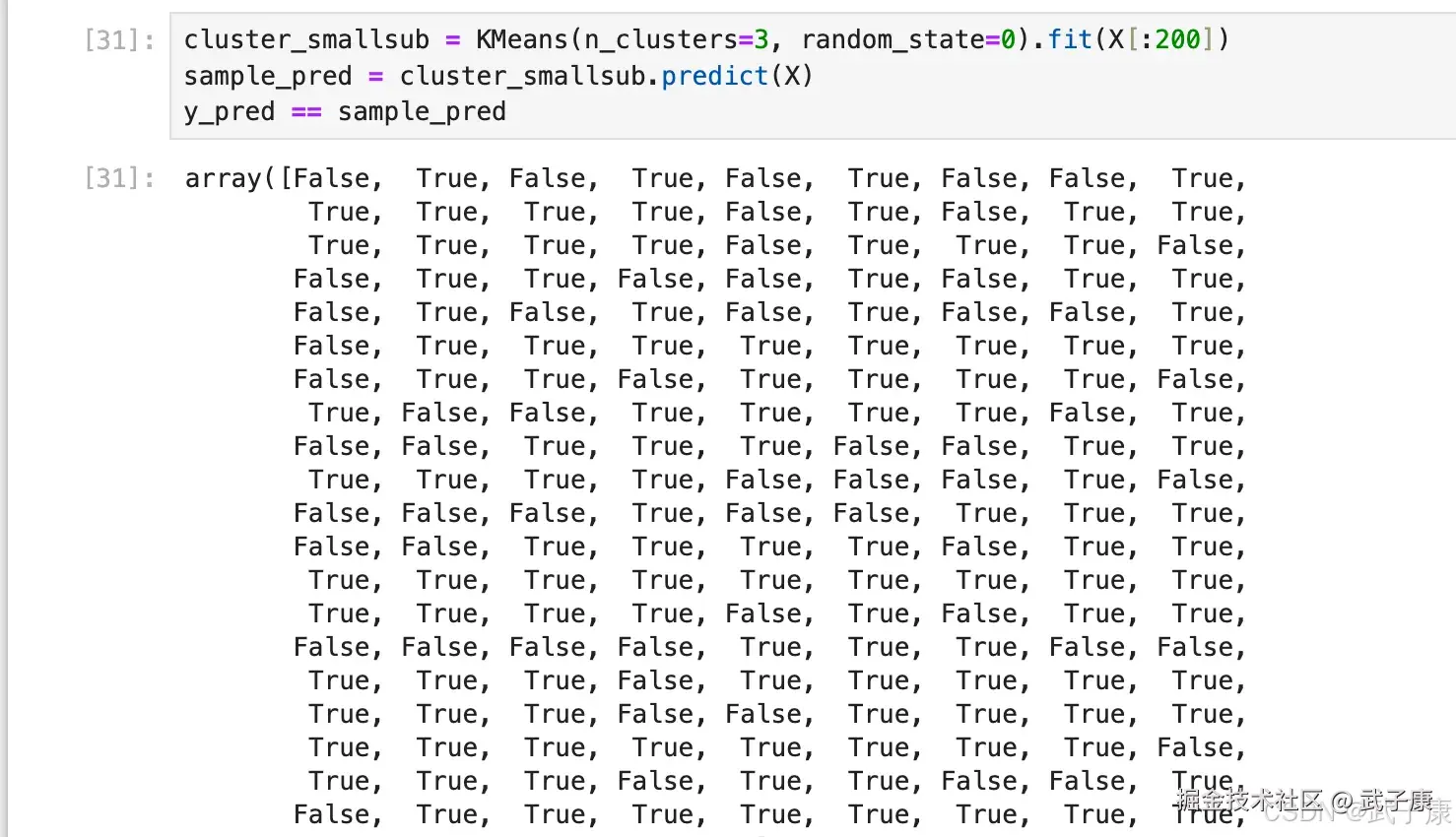 我们什么时候需要 predict?当数据量太大的时候,当我们数据量非常大,我们可以使用部分数据来帮助我们确认质心。 剩下的数据的聚类结果,使用 predict 来调用: