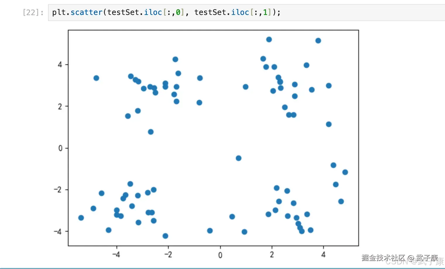 基于这个分布,我们来使用 K-Means 进行聚类。 首先,我们要猜测一下,这个数据中有几个簇?