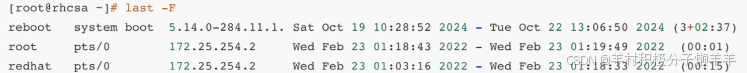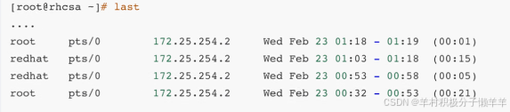 每一个账户上一次的登录时间 /var/log/lastlog