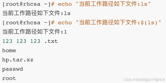 $():他会将括号中的字符串当做命令执行,并替换掉