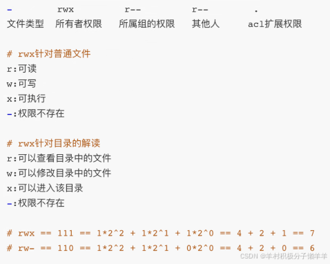 权限说明 # a表示所有组