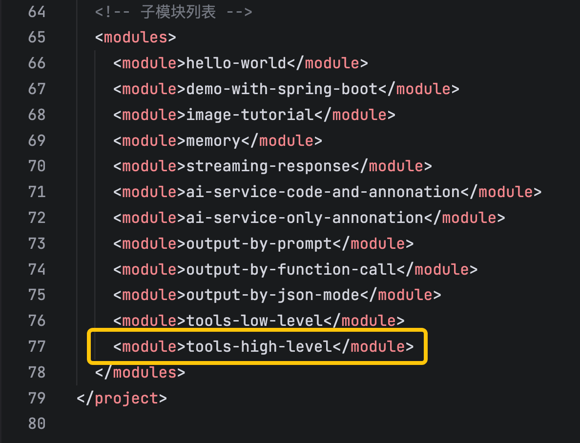 - 《准备工作》中创建了整个《LangChain4j实战》系列代码的父工程,本篇实战会在父工程下新建一个子工程,所以这里要对父工程的pom.xml做少量修改