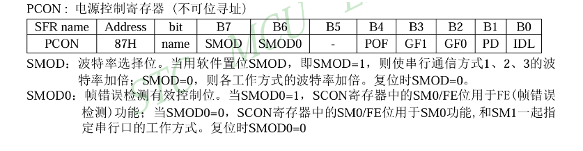 PCON 寄存器中的 SMOD 位,是波特率加倍控制位:
