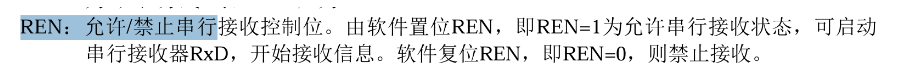 3、将SCON寄存器中的REN位置1,代表允许串口接收数据