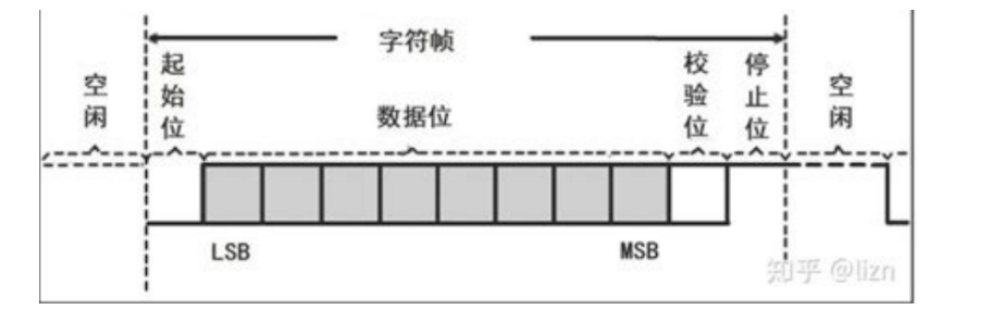 - 随后发送数据位(低位先行),接着发送校验位(如果有)。