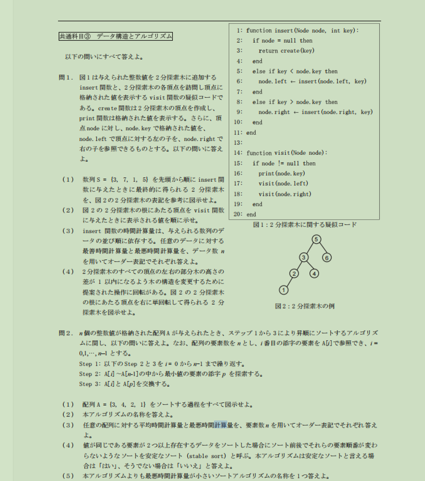 - [問1:二分探索木(Binary Search Tree)](#問1:二分探索木(Binary Search Tree))