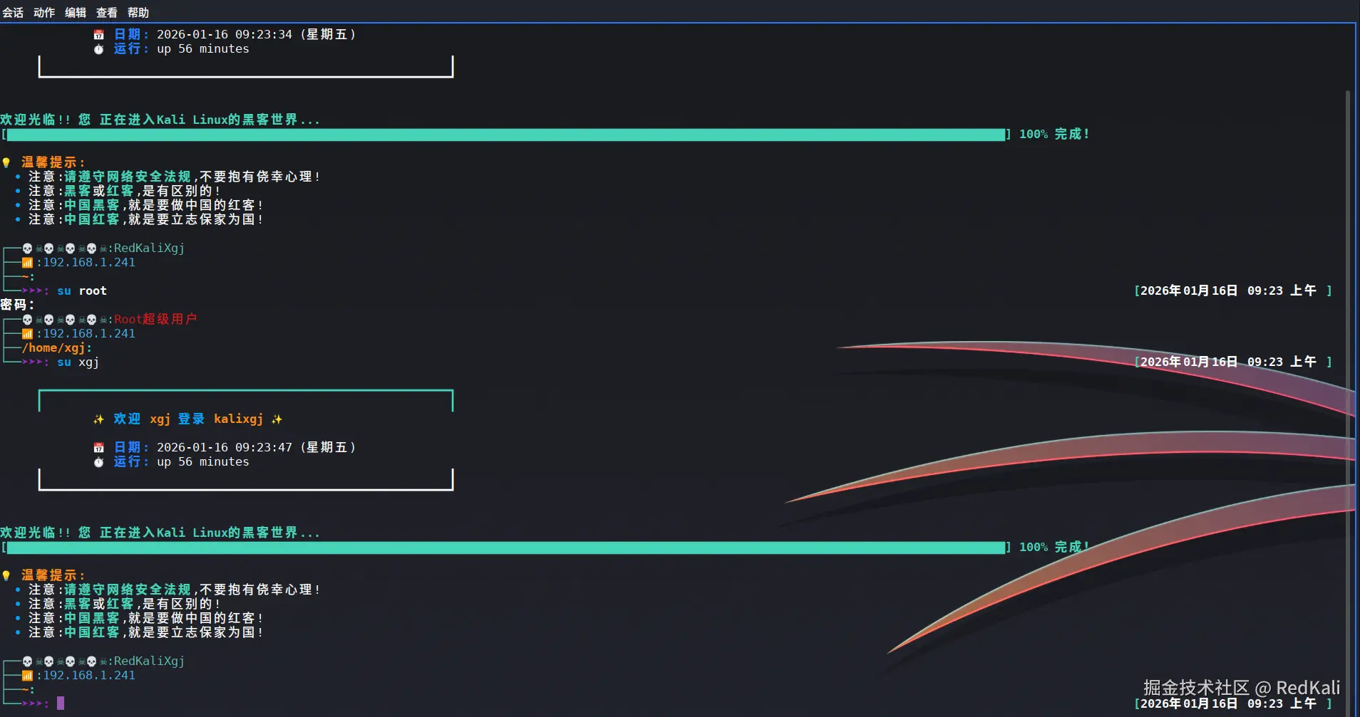 echo -e "\n${GREEN}欢迎光临!! 您 正在进入Kali Linux的黑客世界...${NC}"