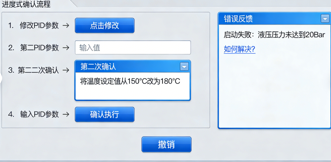 - 渐进式确认:对于非紧急但影响重大的操作(如修改核心PID参数),采用"