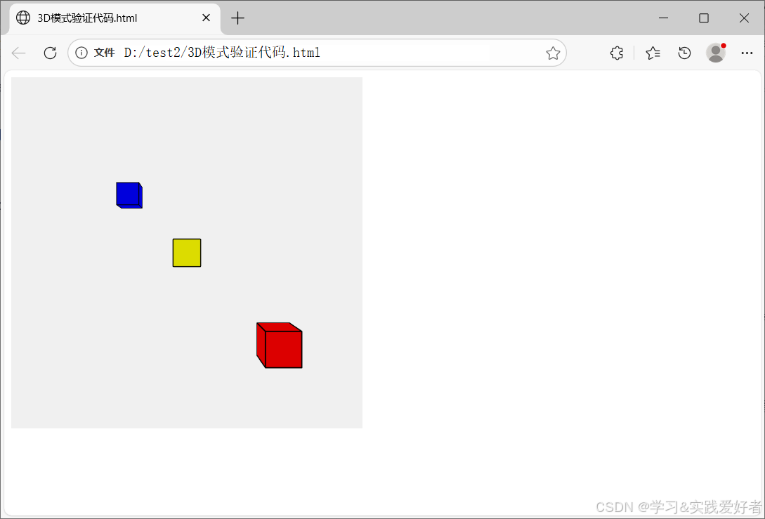 其中,translate(x,y,z):参数对应"x轴右+左-,y轴下+上-,z轴前(出屏幕)+后-",参见下图运行效果: