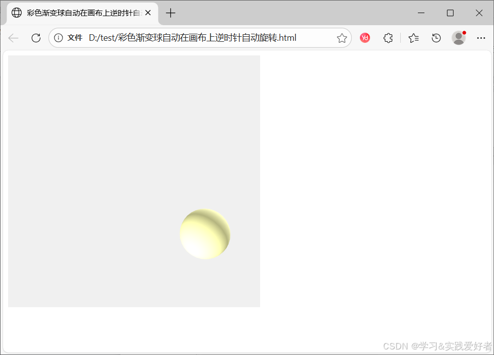 3D版本示例:3D版本彩色渐变的球自动在画布上逆时针自动旋转