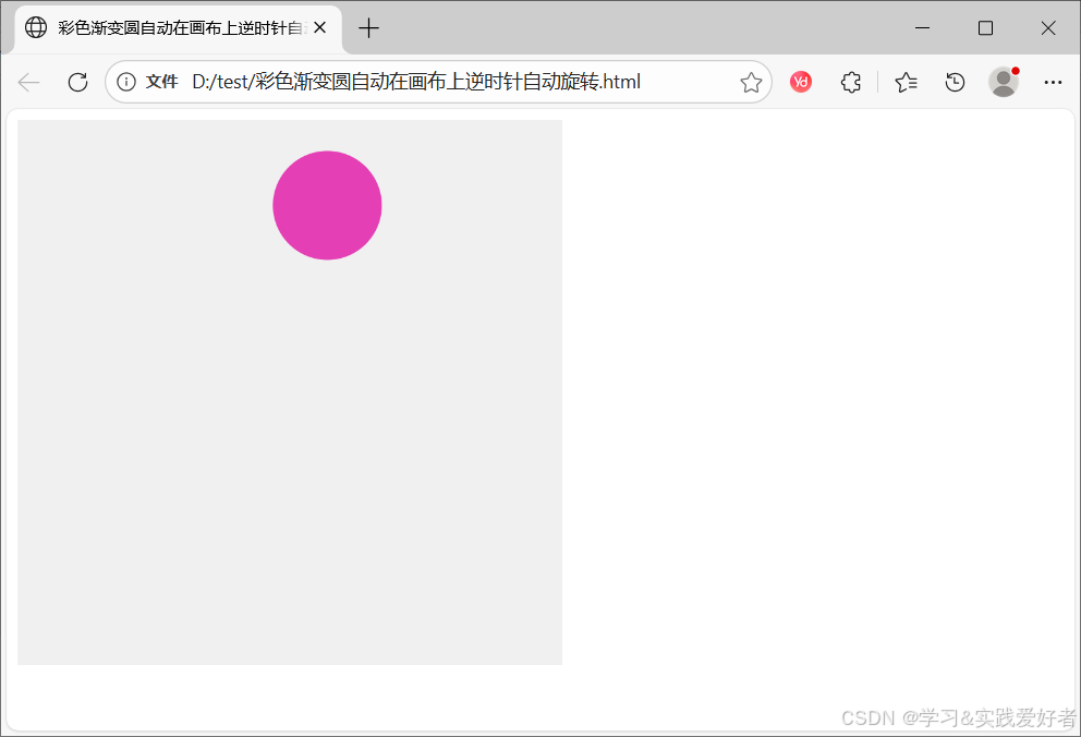 2D 版本示例:彩色渐变的圆自动在圆布上逆时针自动旋转