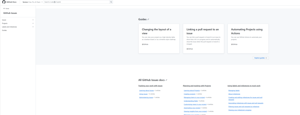 核心功能: Issue记录、标签分类、里程碑、讨论与引用、与提交/PR关联、基础看板与自动化空间。