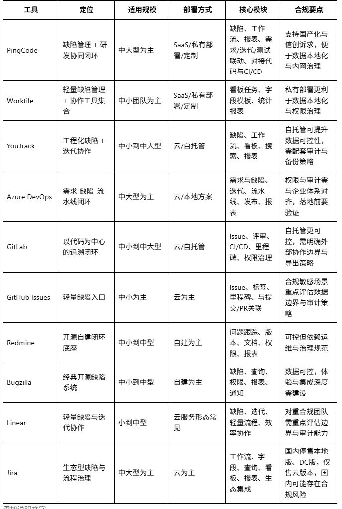 二、2026年10款缺陷管理工具清单(逐一对比)