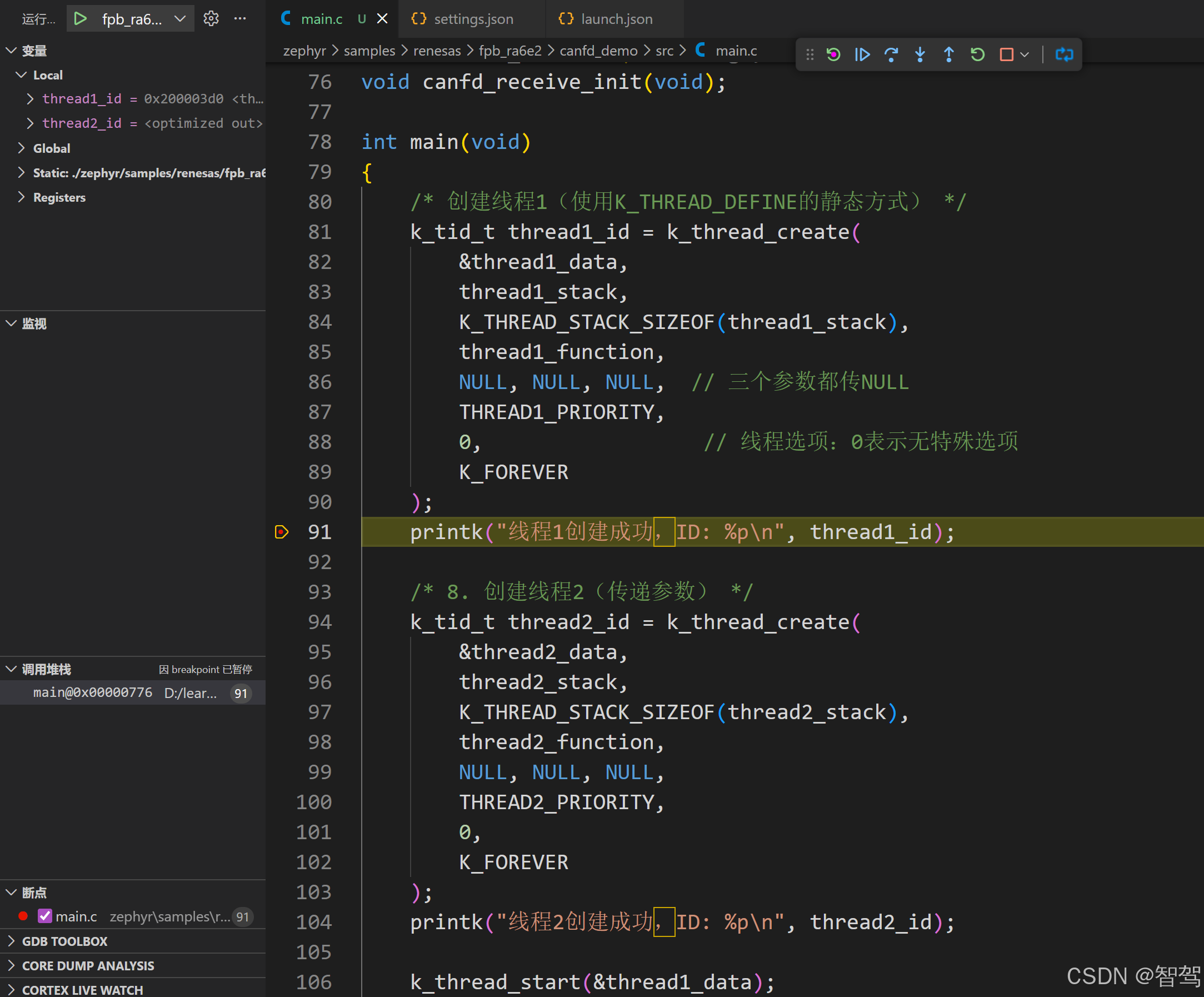 在上一篇中我们以以FPB-RA6E2上的CAN为例,带大家熟悉了Zephyr中的CAN功能和线程创建,在这个过程中也遇到了不少的问题,那如果想要debug调试,在vscode的环境中,如何实现呢?本篇将带大家debug起来,欢迎大家收藏、转发,多多交流哈🤗😃🎉🪅📢