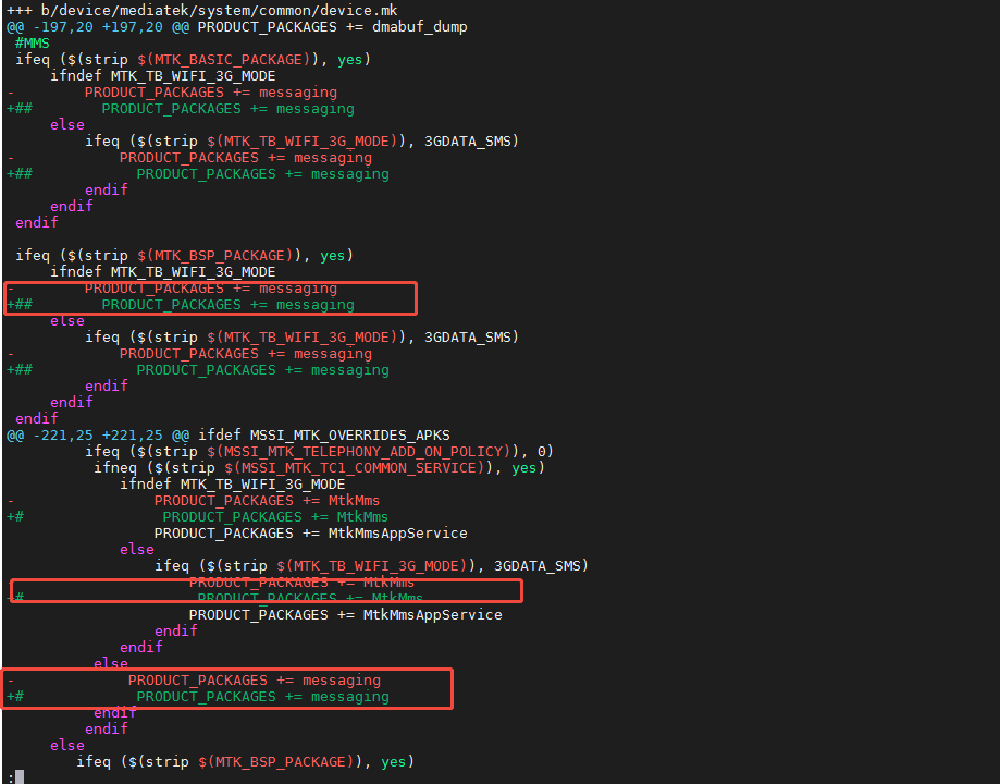 如下,脚本修改内容:核心逻辑就是去掉编译文件中配置的Message 相关的 App即可。