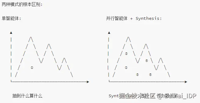 多次采样:这是我反复强调的核心点。五个智能体等于五次独立采样,不再依赖单一路径和运气来寻找峰值。