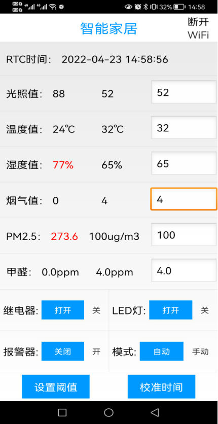 在APP上能实现硬件上的所有功能,达到远程监控的目的。