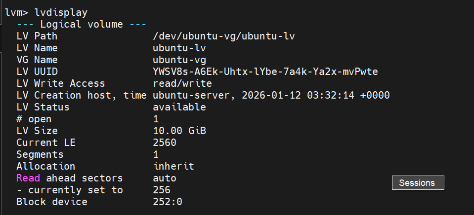 └─ubuntu--vg-ubuntu--lv 252:0 0 10G 0 lvm /