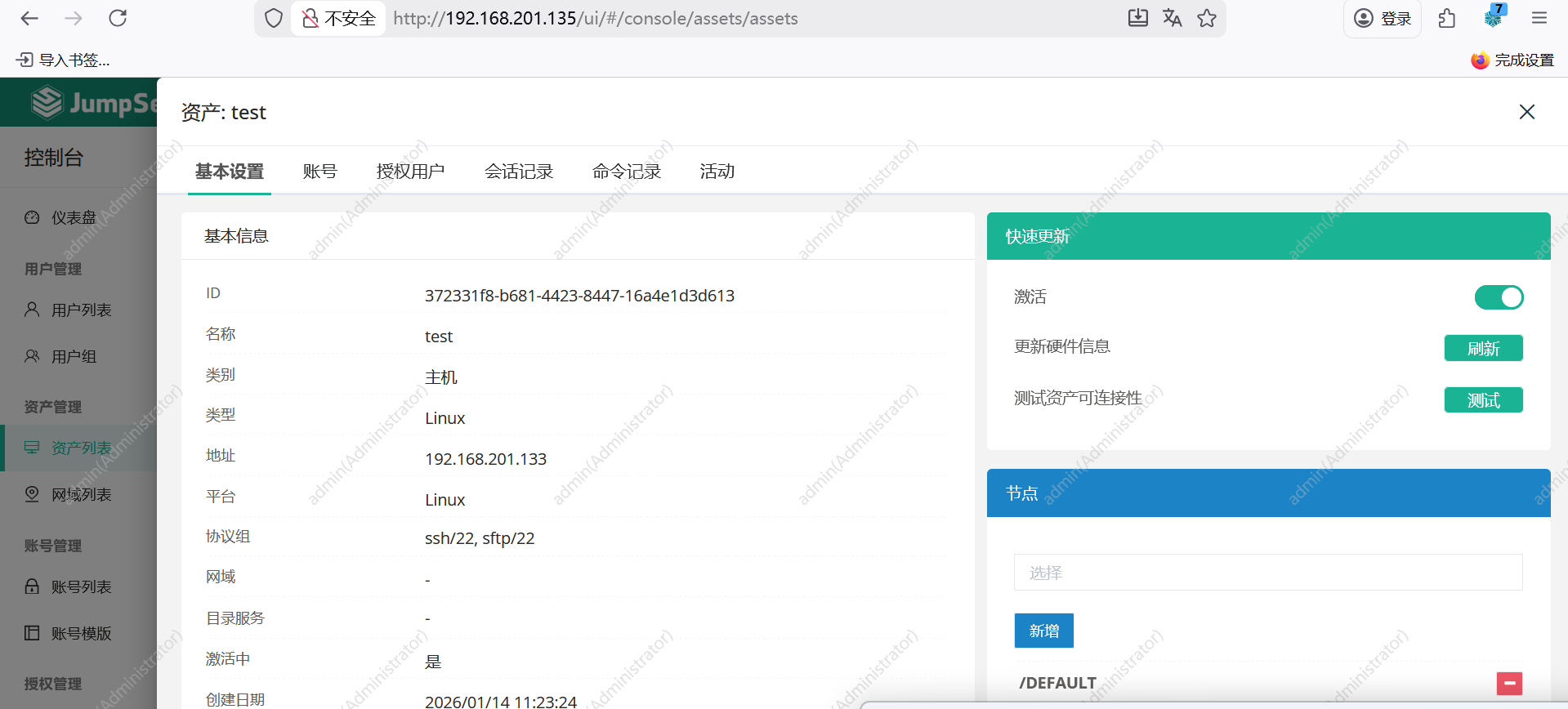 地址: http://<JumpServer服务器IP地址>:<服务运行端口>