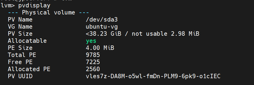 /dev/mapper/ubuntu--vg-ubuntu--lv 38G 9.1G 27G 26% /