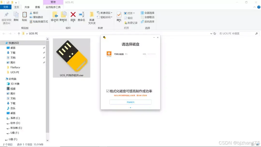 - 选择准备好的"可移动磁盘(U盘)",勾选"格式化磁盘可提高制作成功率",点击"开始制作";