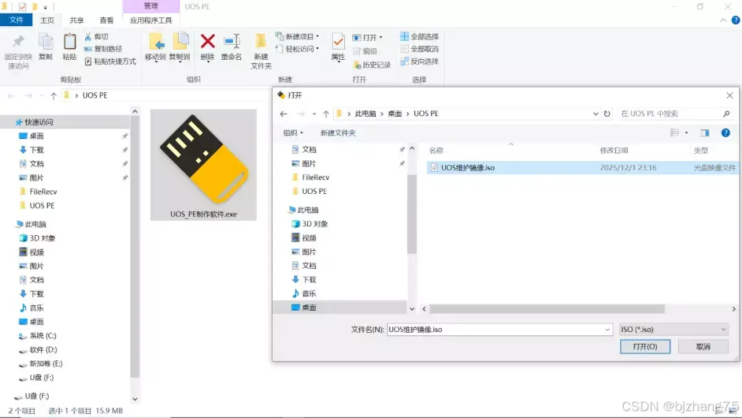 - 下载完成后,先双击打开后缀名为".exe"的PE制作软件,点击"选择光盘镜像文件",选中下载好的"LinuxPE维护镜像.iso"文件;