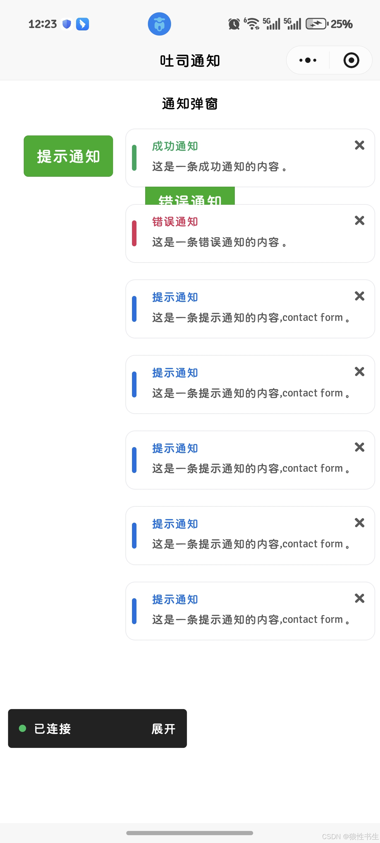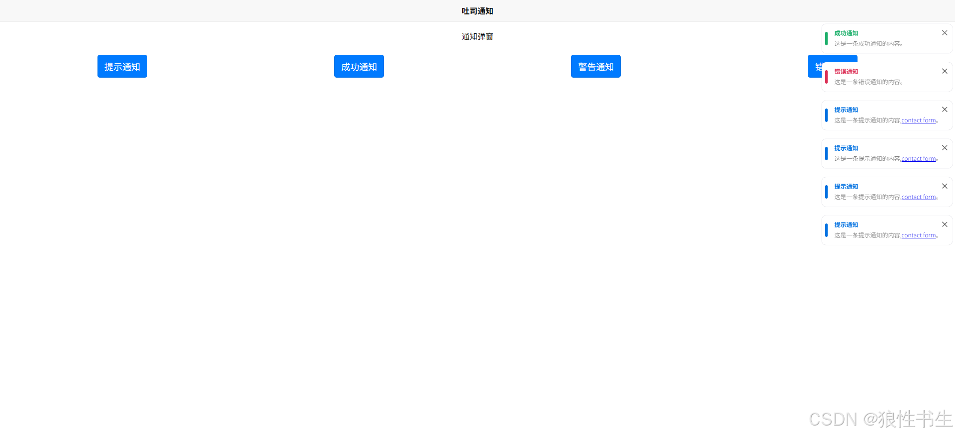 - type:通知类型,有 tip、success、warning、error 四种类型