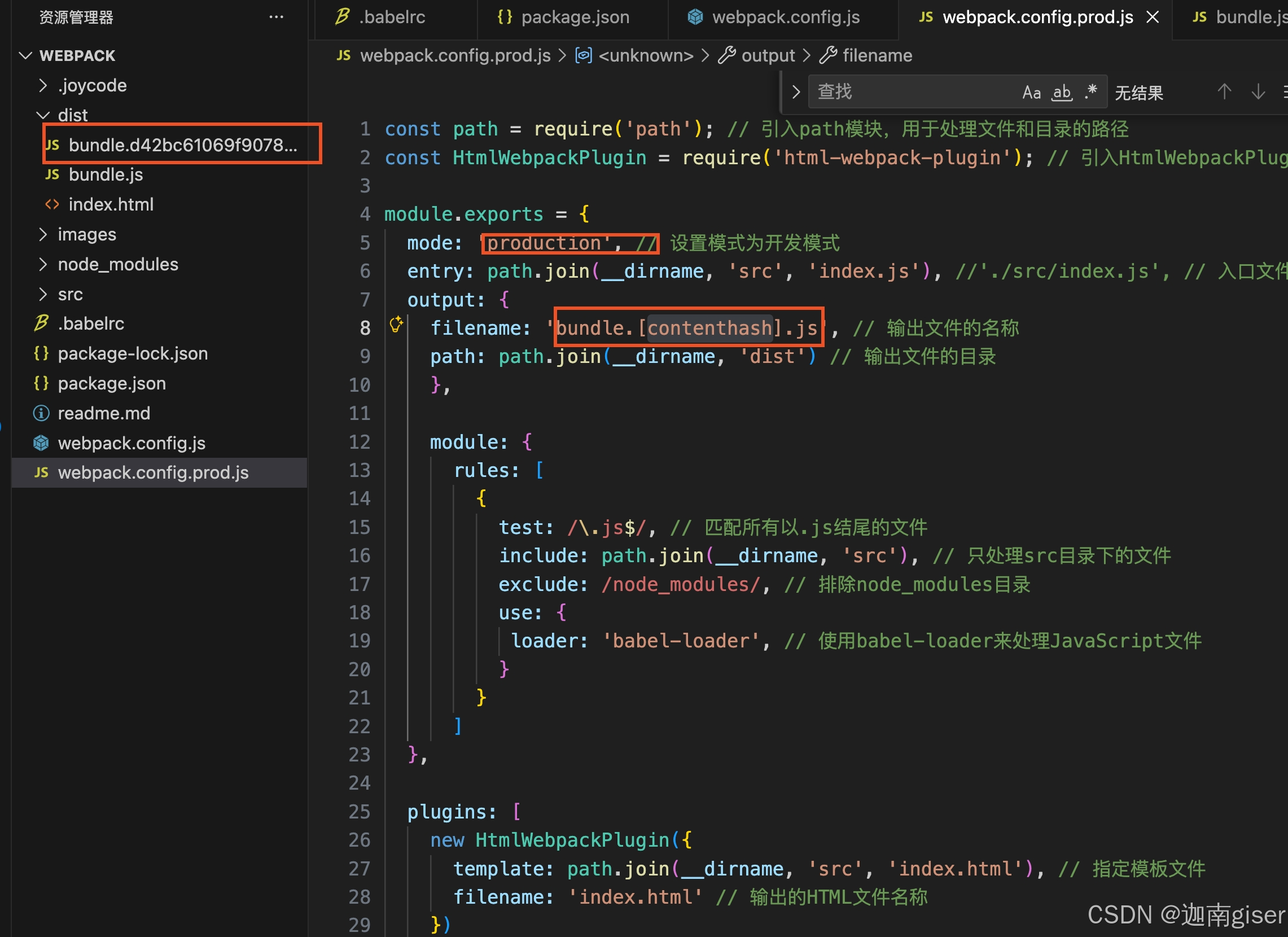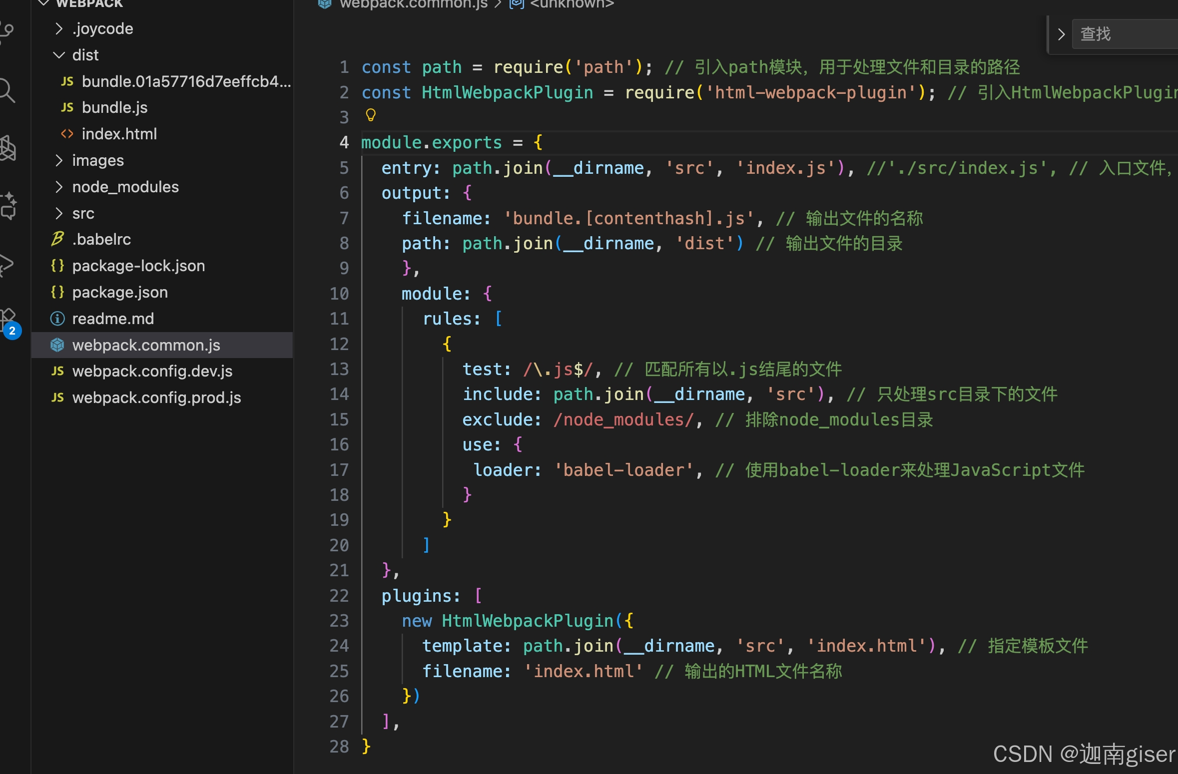 并建立webpack的配置文件 webpack.config.js,进行基本配置: