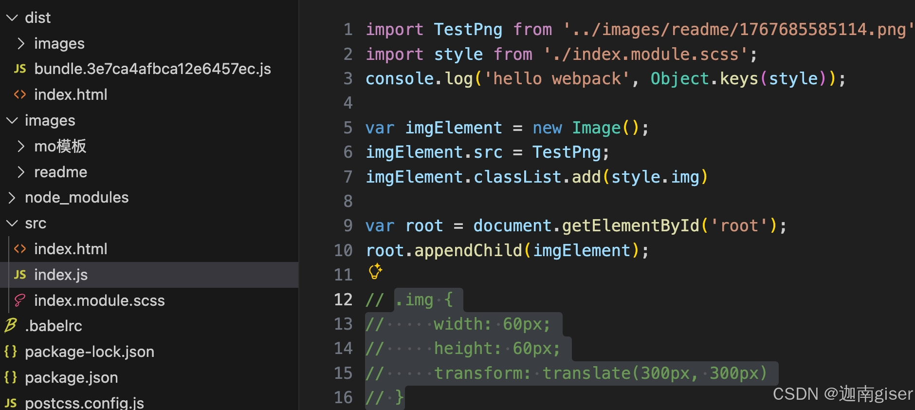 在跟目录下新建src文件夹,写一个index.js