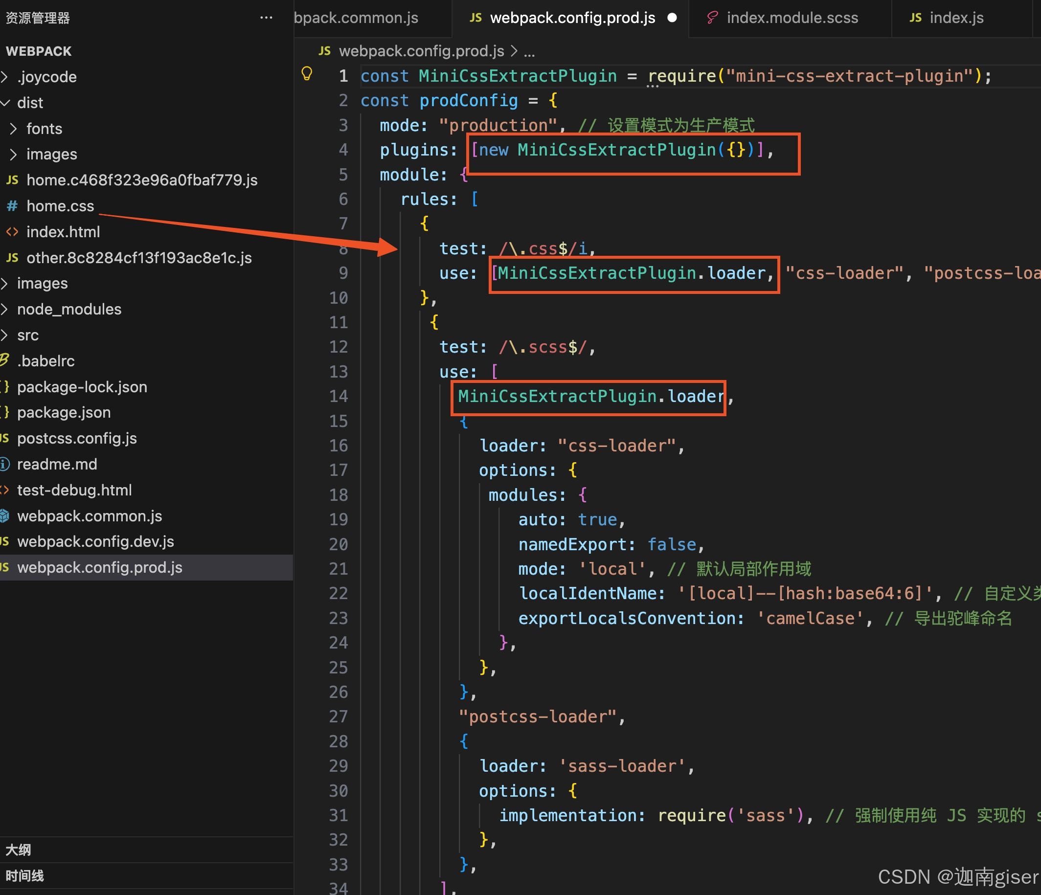 - MiniCssExtractPlugin 抽离配置
