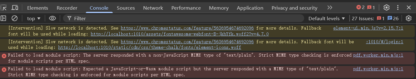 到这里就有人会说了,配置nginx不就好了吗,这报错很明显就是content-type不对吗,你对mjs文件配一下default_type application/javascript不就好了吗,不不不,这在Google是可行的,在edge报大坑,查到的原因是 Chromium Edge 对 绝对 URL + ESM Worker 的 MIME 检查更严格。于是我又写了我一开始写的那一串import workerSrc from 'pdfjs-dist/build/pdf.worker.min.mjs?url'结果,edge是行了,Google又开始报大坑