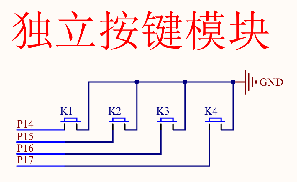 51 单片机开发板的独立按键通常采用 "共地接法",原理图如下: