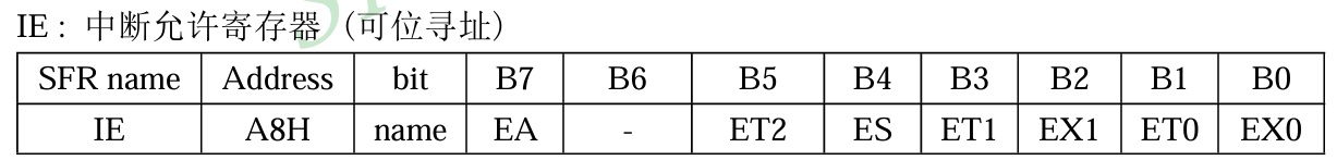 [3.4.1 IE寄存器](#3.4.1 IE寄存器)