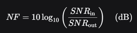 - (F) 为噪声系数(为线性值,(F = 10^(NF/10)),