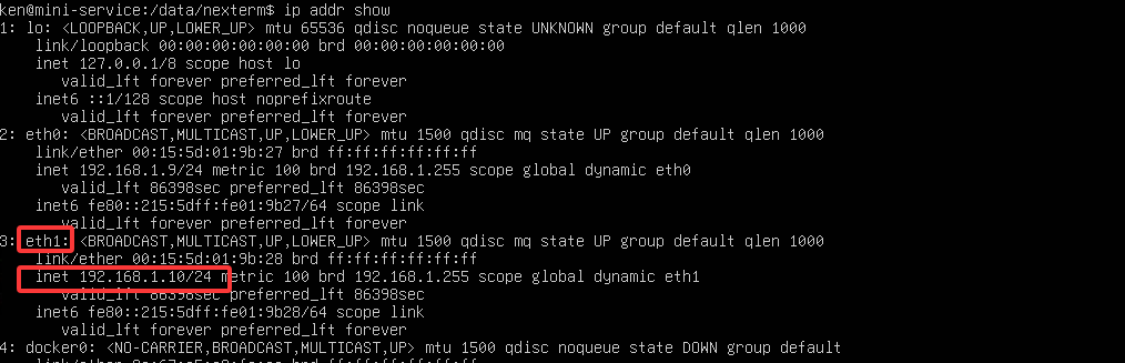 系统为ubuntu 24 服务器版,以hyper-v虚拟机的方式运行,有一张默认的网卡eth0,可以正常通过dhcp的方式取得ip,但新增的一个网卡eth1则无法获取到ip。网卡信息可以通过命令ip addr show 显示出来,如下图所示: