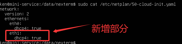 我们可能通过查看相应的yaml文件确认,这里是/etc/netplan/50-cloud-init.yaml,如下图所示: