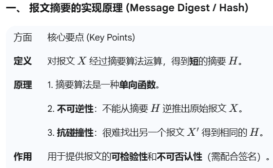 | 效率高 | 散列值长度固定且远小于原报文,私钥加密/解密速度快。 |
