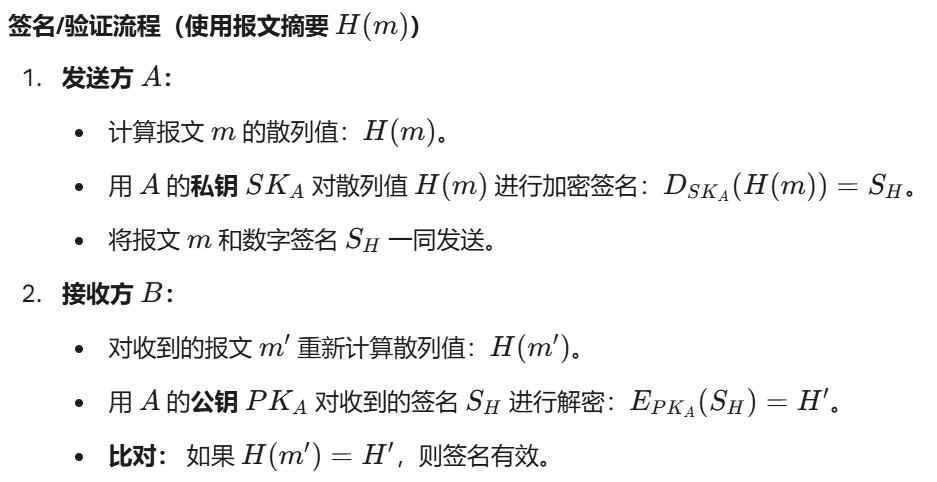 | 完整性强 | 散列函数校验保证了报文的完整性,任何对 m 的微小修改都会导致 H(m')不匹配。 |