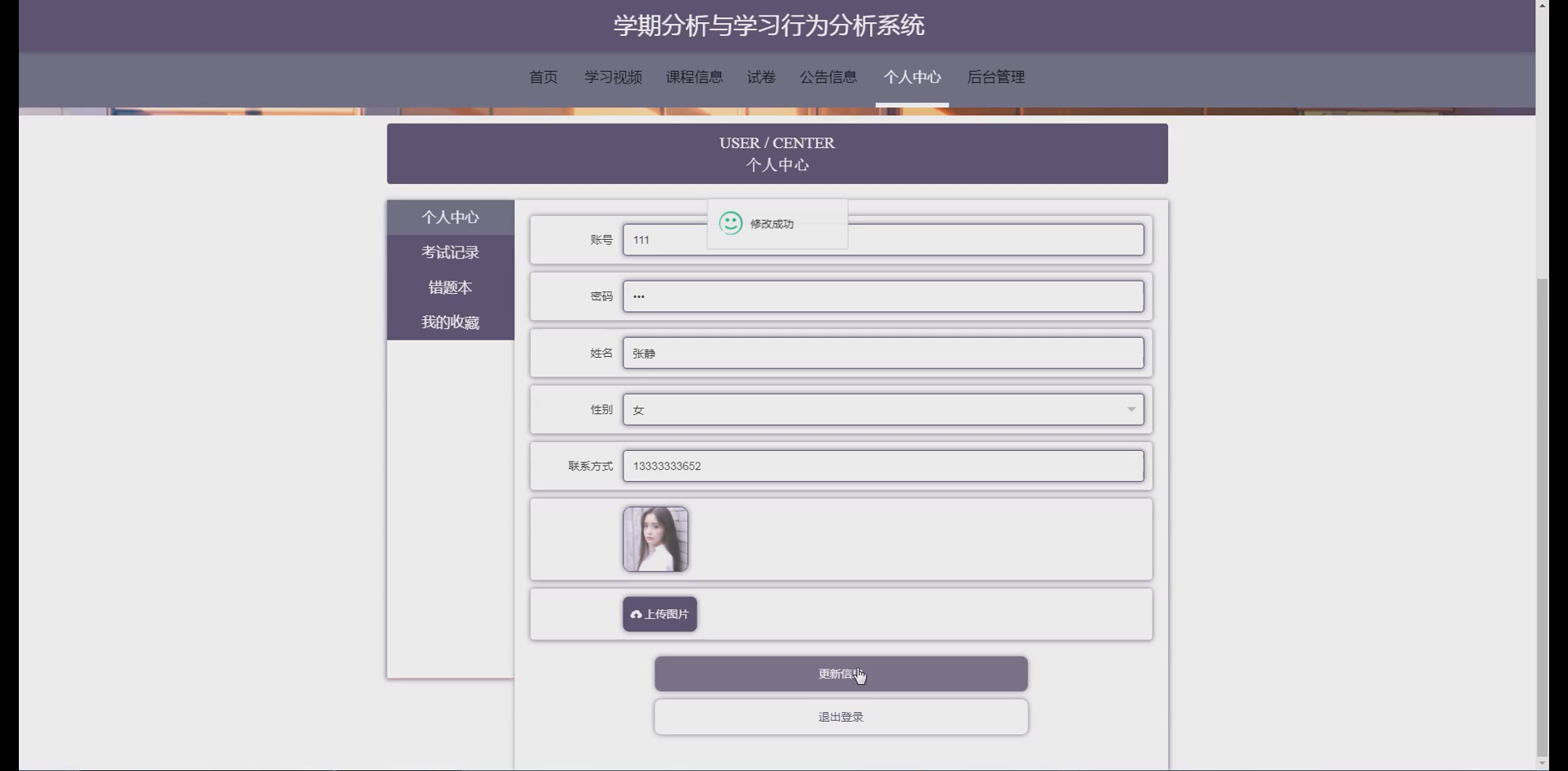 前端架构:采用Bootstrap实现响应式布局,通过ECharts绘制学习行为、学期成绩等可视化图表;利用jQuery优化交互效果,提升用户体验。