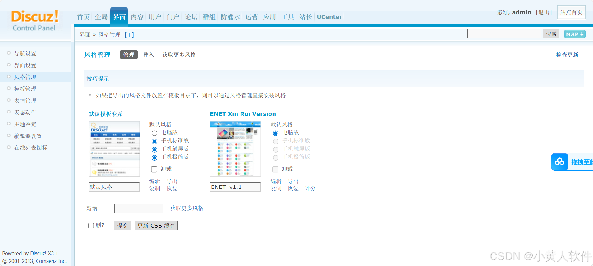 安装完成,进入后台--模版里--选择上传的模版安装