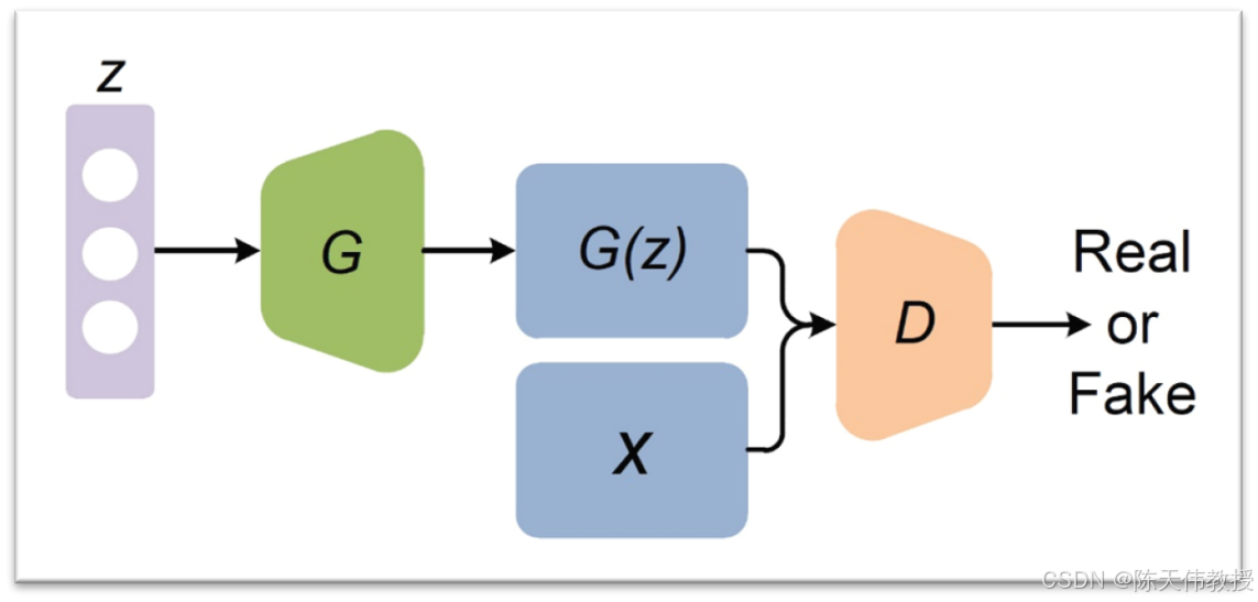 判别器 D:判断输入的数据是真实样本(来自真实世界)还是生成样本(来自生成器 G)。