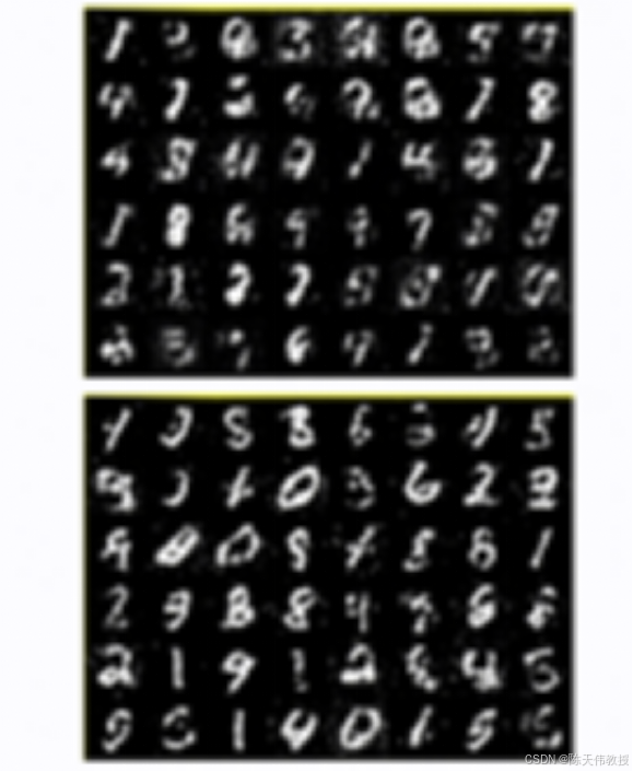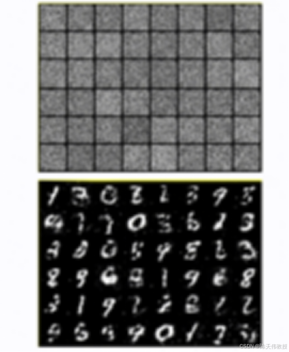 基于 GAN 的数字图像生成从左往右,随着不断学习,GAN 生成的数字愈发真实.