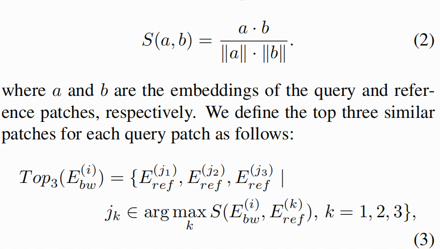 对每个 query patch,和所有 reference patches 做余弦相似度,取每个区域最相似的 top-3 patch。