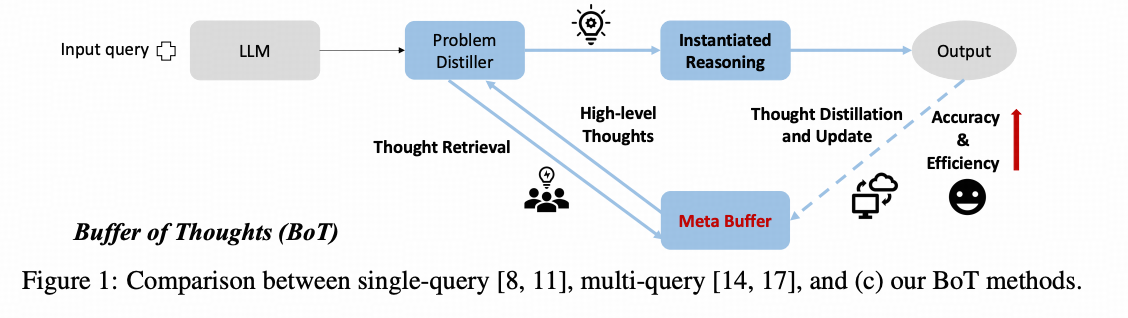 这其中的存储解题模板的经验库被作者试做Buffer,这个方法被称作 Buffer of Thought 即 BOT。